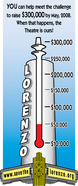 With the Lorenzo Theatre purchase agreement signed, we need your help NOW in order to reach our goal of raising $300,000 by May 2008. We've sent flyer's to everyone on our mailing list as well as to area business's and we're counting on you to come through for our historic art deco gem. By clicking on the word "Back" at the bottom of this page you'll reach our pledge card page. Just fill it out, print it and enclose your check, it's just that easy! And you'll be helping to bring back a once proud landmark which can serve as a beacon for the revitalization of San Lorenzo Village. Good News From The Village RealtorsThe Village Realtors� Jose Diaz has made a significant pledge to our capital fundraising campaign. From now until the end of 2007 he will donate $50 to the fund for every escrow he closes. And he challenges other area Realtors to see who can raise the most money for our fund drive! In addition, he has pledged $1,000 to our campaign and has offered to print and deliver our various flyer's when he distributes his notepads and newsletters to the entire San Lorenzo Village! That will save us printing costs as well as postage to some 6,000 homes in the Village. Many thanks, Jose, to you and your Team at the Village Realtors. We�ve all heard it said, "It takes a village to raise a child"; well, we think it takes a Village to revive a Theatre! |